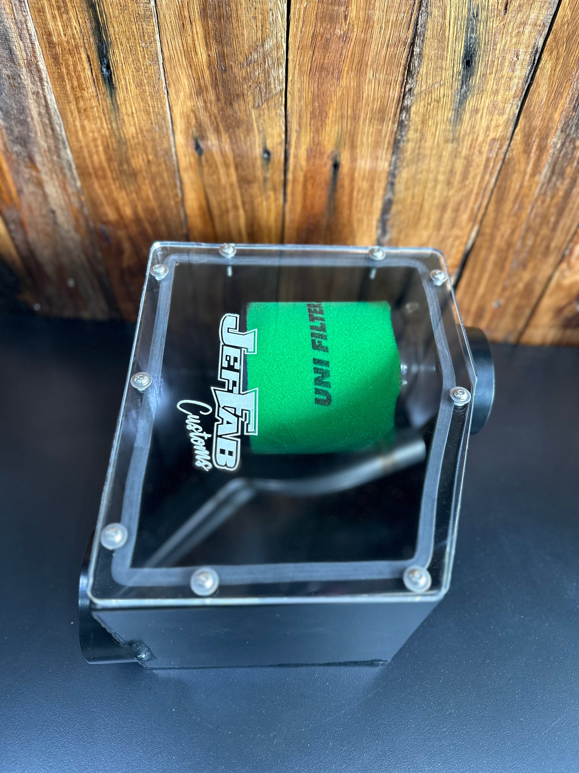Made from 2mm marine grade aluminium with an 8mm thick clear acrylic lid that allows you to easily monitor your air filter.